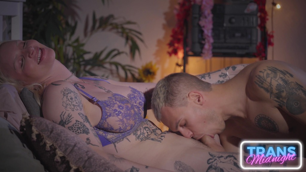 Tonight we Debut two fantastic models, Astrid Solei and Tony Sting! They couldn t have fit better together. Not only do they look perfect together but the whole scene was filled with passion and chemistry. It was clear that they were into each other both on and off camera. After meeting and being on set together, they couldn t wait to jump into it. They need to get their feelings out and start with some very passionate kissing. Soon Tony goes lower and takes down Astrid’s panties. He takes her into her mouth and her cock looks so hot! It’s one of the prettiest girl dick’s that we’ve ever seen! He eagerly takes her into his mouth and she instantly starts to get fluffy. Astrid cant take it anymore when she realizes how hard Tony’s cock is getting. She instantly gets down on it with her mouth and gives one of the hottest blowjobs ever. Her beautiful puffy lips look so good around Tony. Tony takes Astrid into spoons position next. You can see EVERYTHING as he starts pounding into her! Astr